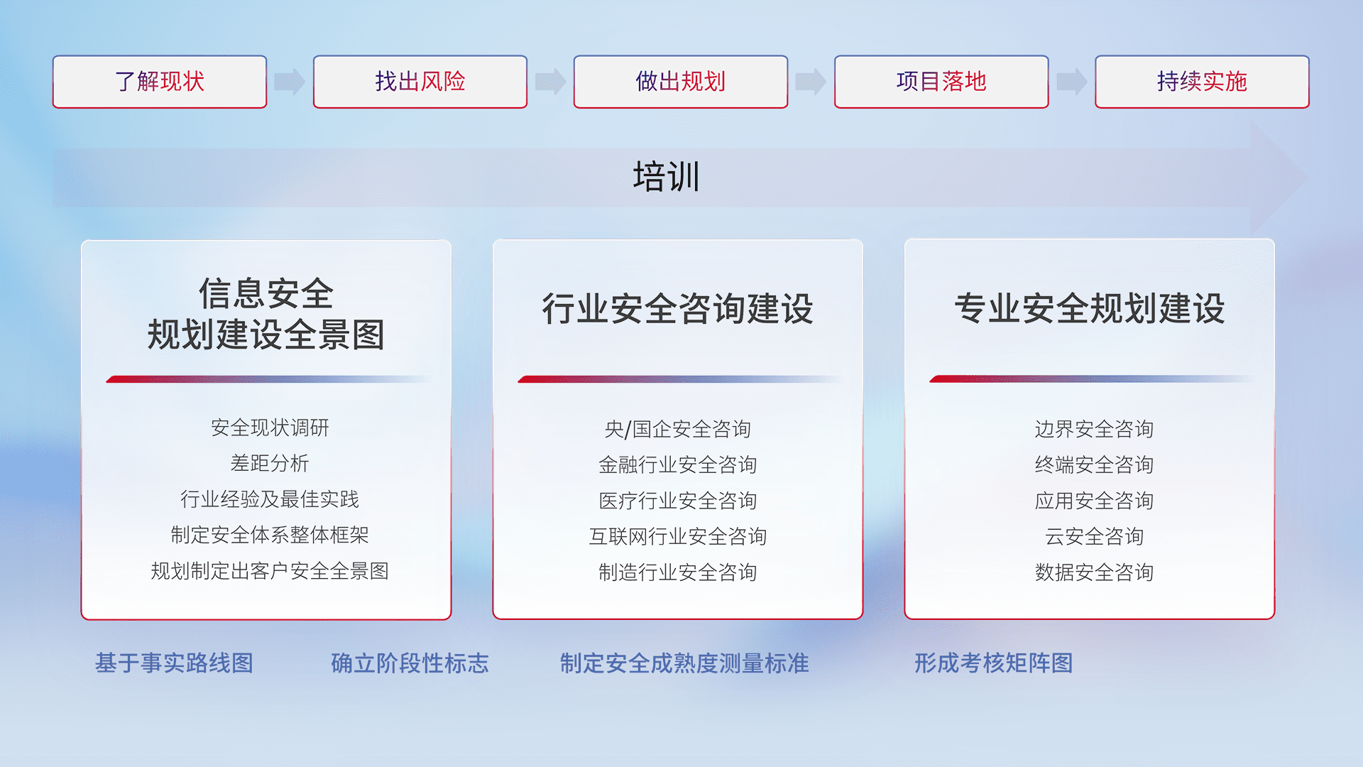 梳理客户信息安全现状调研、、、差距分析结果,,,结合行业先进经验及最佳实践,,,,制订客户的信息安全管控体系总结架构,,,,最终形成一个完整的客户信息安全规划与建设的全景图。。。